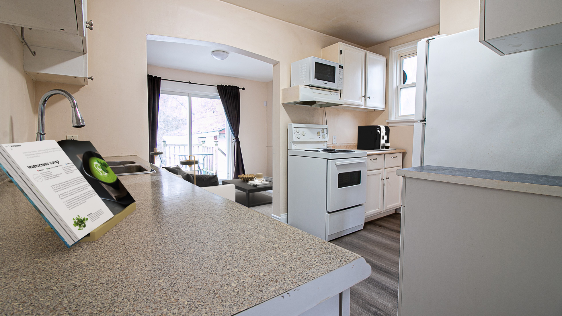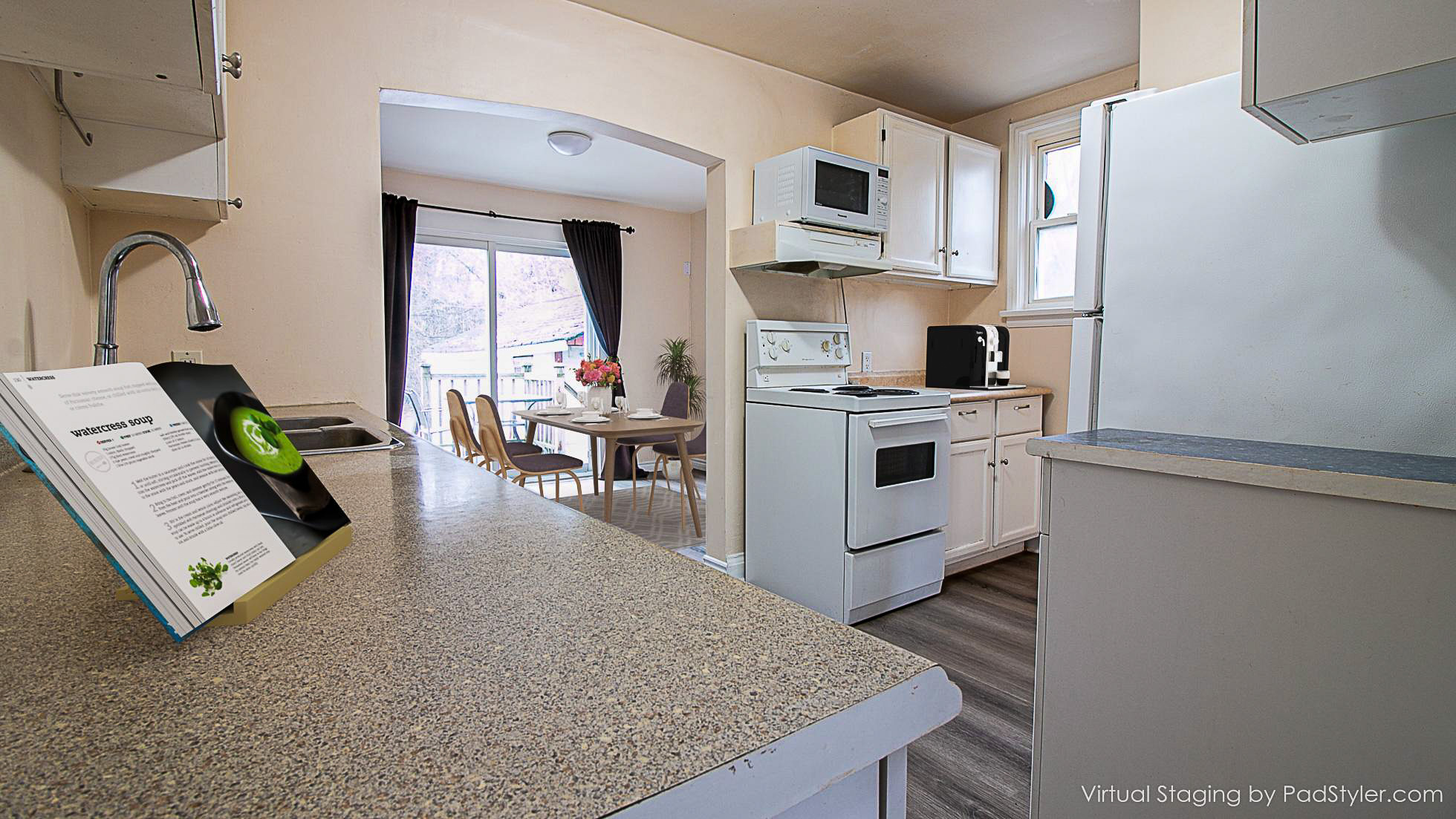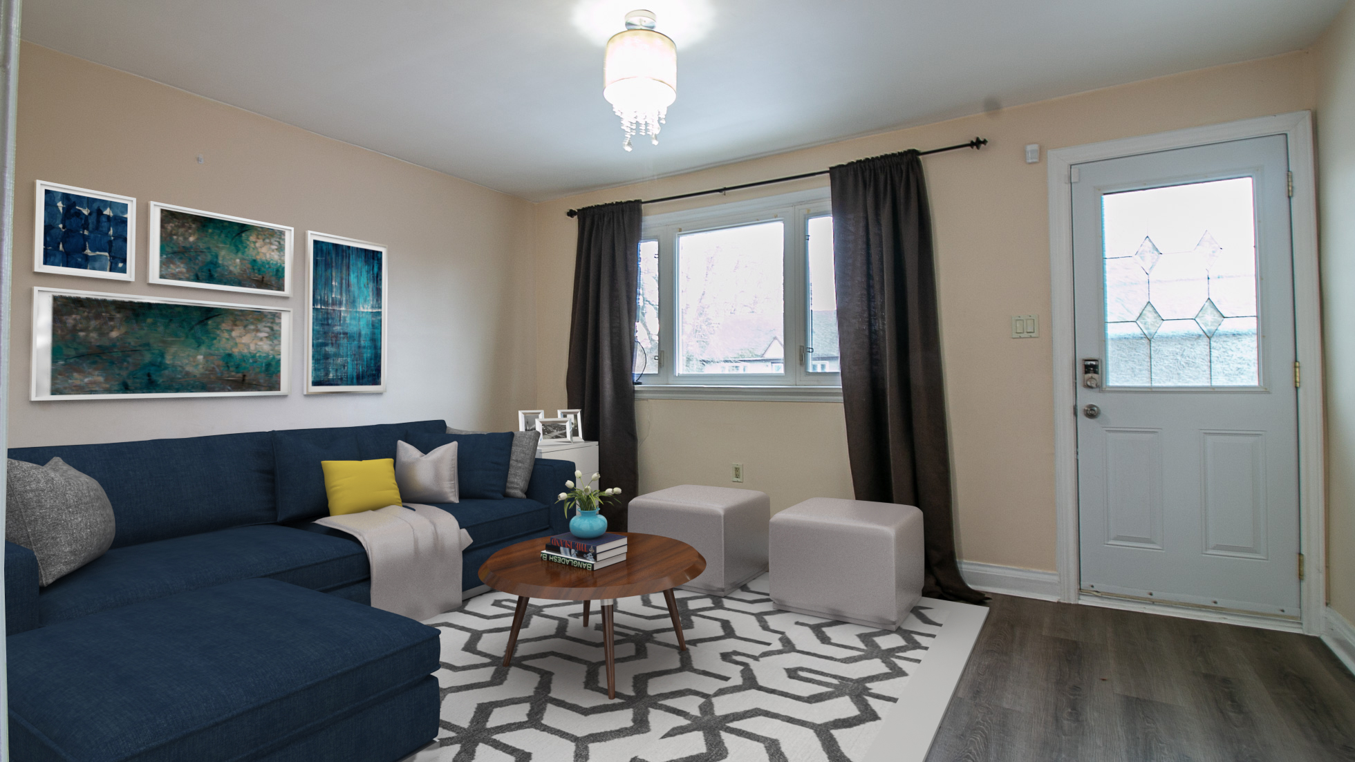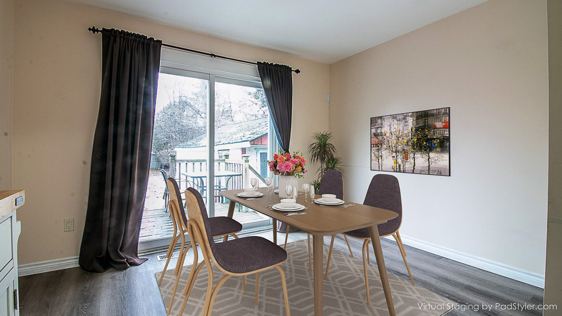 This main level Living room, Kitchen,Dining Room and bedroom photos are all virtually staged